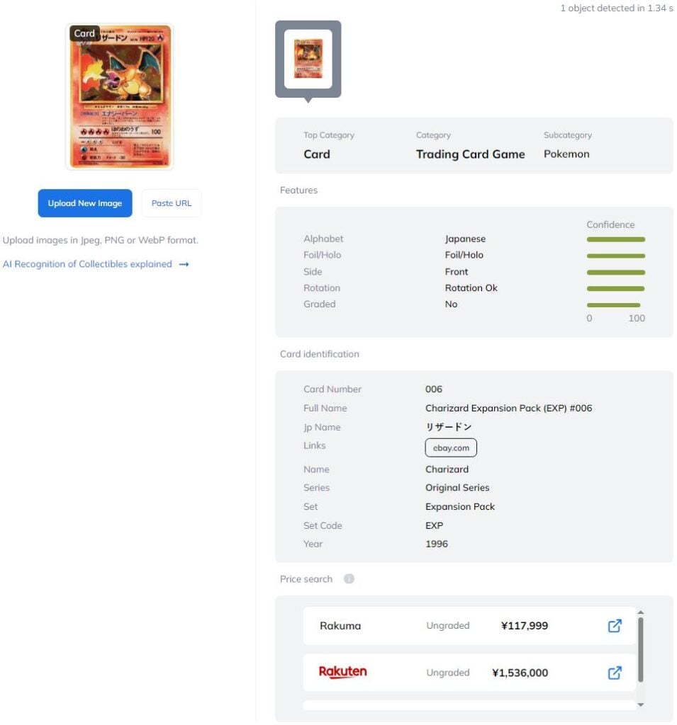 And here’s how the system dealt with the original Japanese Charizard 006 from 1996:
