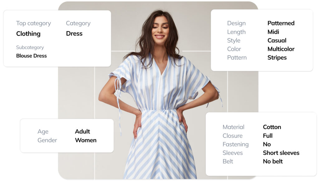 These tools are indispensable for today’s fashion shops and marketplaces, particularly those with extensive stock inventories and large volumes of data. In the past few years, automated fashion tagging has made time-consuming manual product tagging practically obsolete.